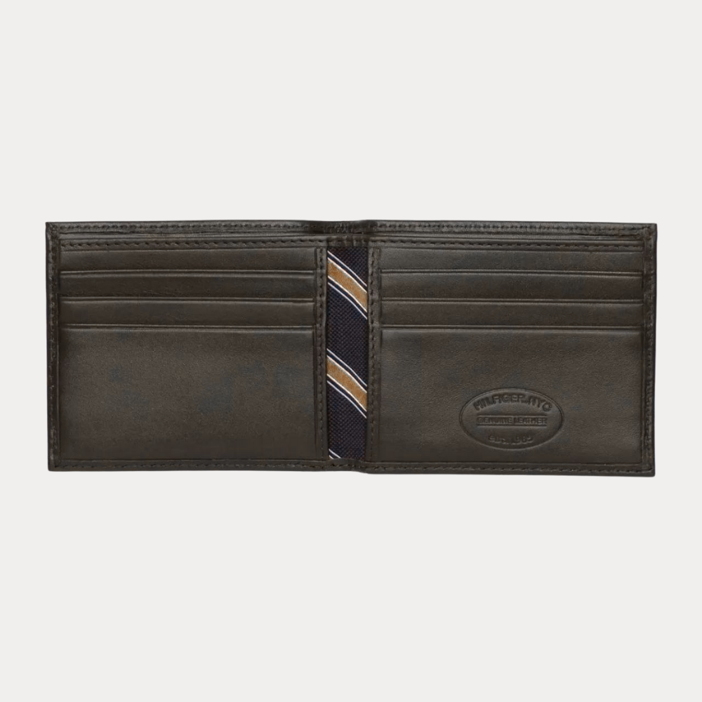 Billetera de cuero suave, de tamaño compacto ideal para llevarla en el bolsillo del pantalón o de la casaca. Características •100% cuero •Acabado suave •Múltiples ranuras interiores para tarjetas •Compartimento interior para billetes •Bandera de Tommy Hilfiger esmaltada en la parte delantera