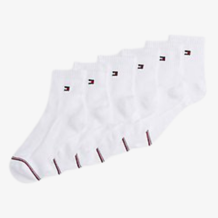 Paquete de 2 pares de calcetines de vestir confeccionados con una mezcla de algodón peinado y rayón para ofrecer comodidad y transpirabilidad. Ni demasiado gruesos ni demasiado finos: son perfectos. Los múltiples estampados de la bandera de Tommy Hilfiger los convierten en unos calcetines ideales para el día a día. Detalles: -Paquete de 2 pares -Mezcla de algodón peinado y rayón -Bandera de Tommy Hilfiger estampada en toda la prenda -Longitud más larga -Ajuste regular Cuidado: Lavar a máquina con agua tibia, no usar blanqueador, no secar en secadora, no planchar, no lavar en seco.